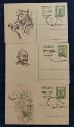 India 1969 Mahatma Gandhi Birth Centenary Set of 3 Post Card FD Cancelled Mint # 13288