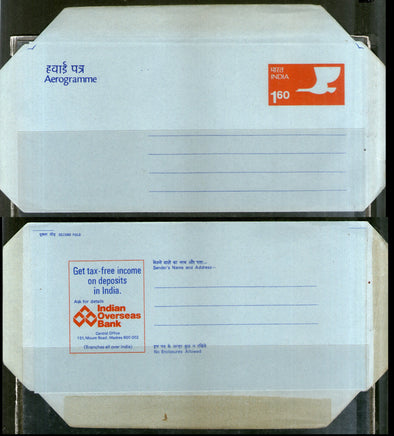 India 1976 160p Swan Indian Overseas Bank Advt. on Postal Stationery Aerogramme MINT # 7138