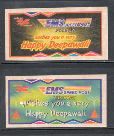 India 2 Diff. India Post Happy Deepawali Speed Post Lucknow Self-Adhesive Greeting Label # 600