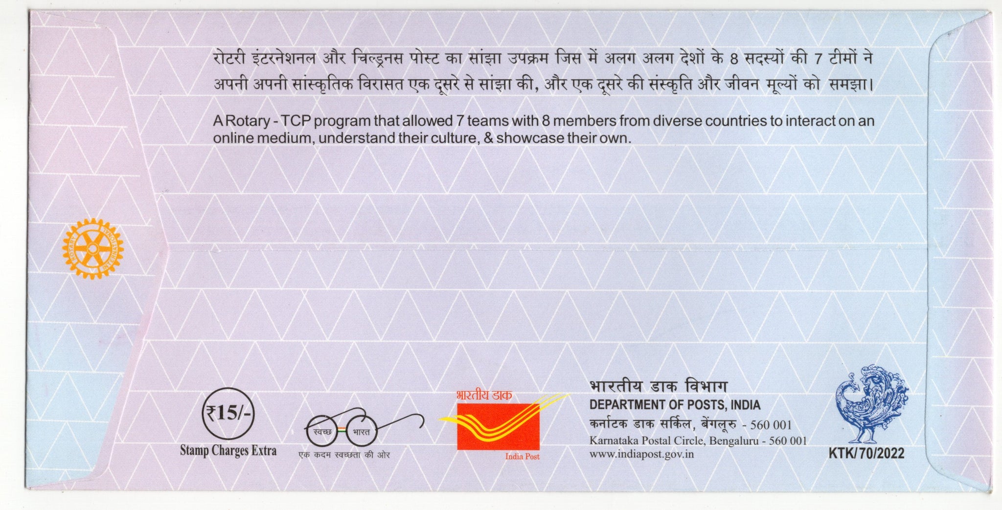 India 2022 Imagine Rotary International Cultural Exchange Special Cover # 6895