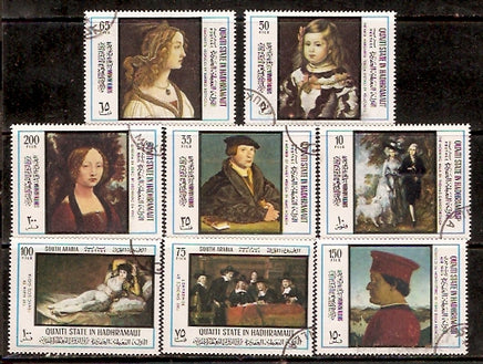 Qu'aiti State Aden South Arabia Rembrandt Da Vinci Painting Art 8v Cancelled