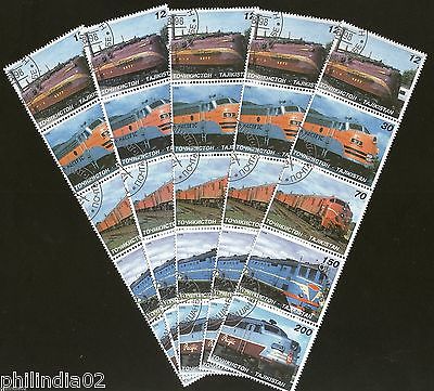 Tajikistan 1998 Locomotive Railway Train Transport Setenant Cancelled x5 # 6315