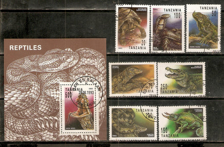Tanzania 1993 Reptiles Snake Lizard Animal Wildlife Sc 1128-35 7v+M/s Cancelled