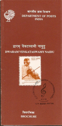 India 1993 Dwaram Venkataswamy Naidu Violinist Phila-1387 Cancelled Folder