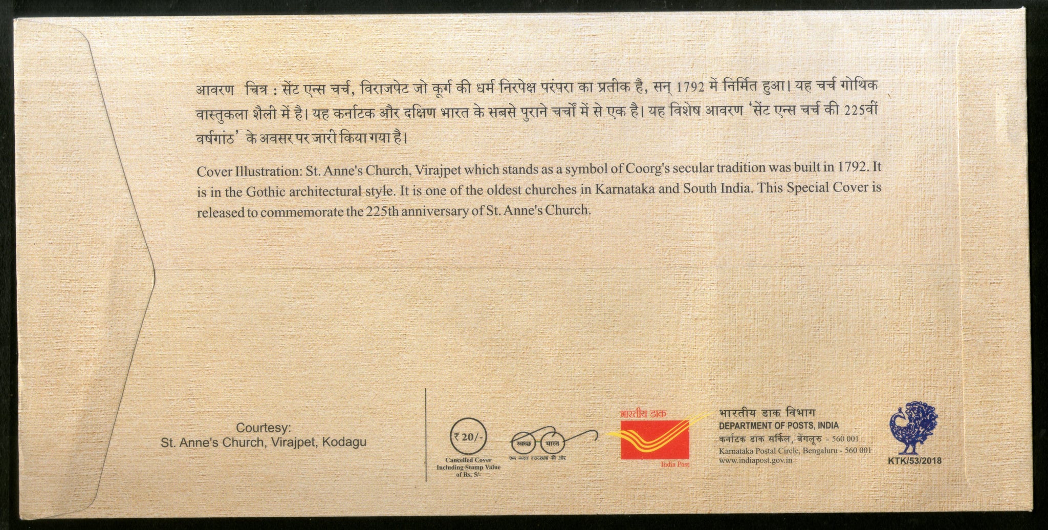 India 2018 St. Anne's Church Anniv. Christianity Religion Special Cover # 6854