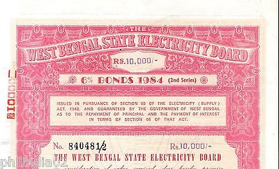India 1984 West Bengal State Electricity Bonds 2nd Series Rs. 10000 # 10345F