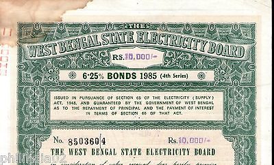 India 1985 West Bengal State Electricity Bonds 4th Series Rs. 10000 # 10345L