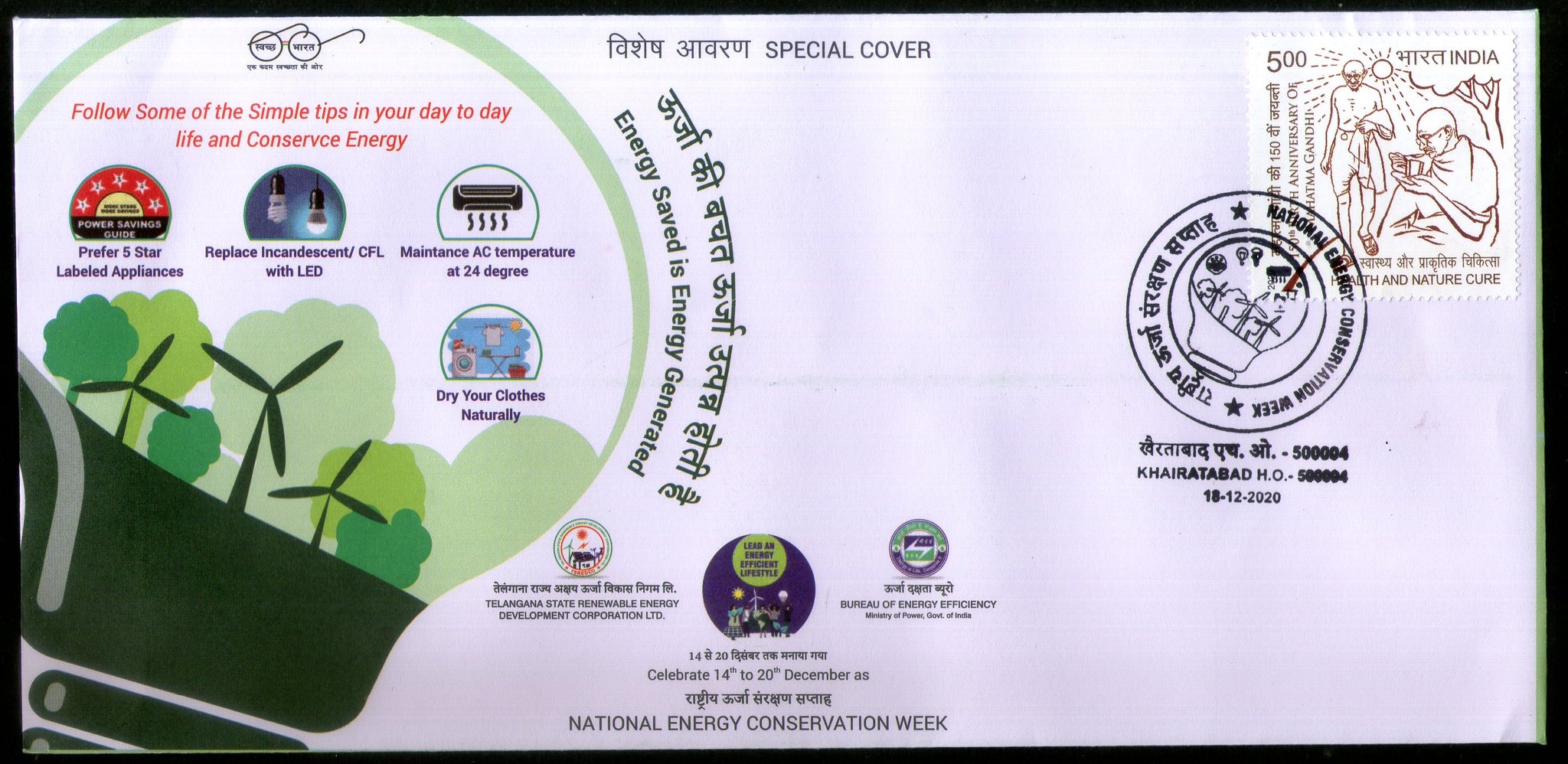 India 2020 National Energy Conservation Week Windmill Environment Special Cover # 6603