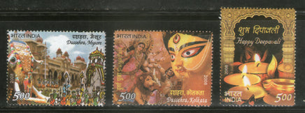 India 2008 Festivals of India Dussehra Deepavali Durga Puja 3v Phila-2388a MNH