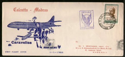 India 1966 Calcutta - Madras Indian Airlines Domestic First Flight Cover # 1371-9