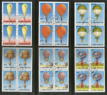 St. Thomas & Prince Is. 1979 Hot Air Balloons Aviation Transport BLK/4 Sc 555-60 Cancelled # 1938b