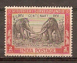 India 1951 Geological Survey Elephant Pre Historic Animal Phila-298 1v Without Gum # 296