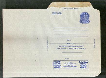 India 1979 20p Peacock Inland Letter Card with State Bank Travellers Cheques Advertisement ILC MINT # 147