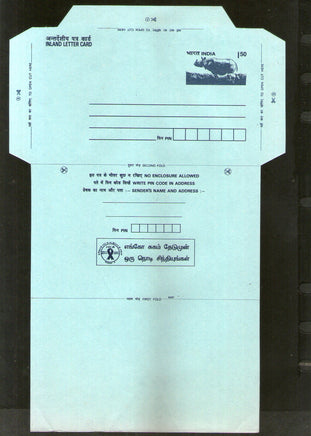 India 1999 1.50Rs Rhino Inland Letter Card with Aids Awareness Advertisement ILC MINT # 515