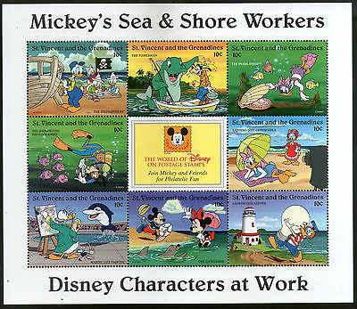 St. Vincent Walt Disney Mickey's Sea & Shore Workers Cartoon Disney Sheetlet MNH # 15064Free counters!