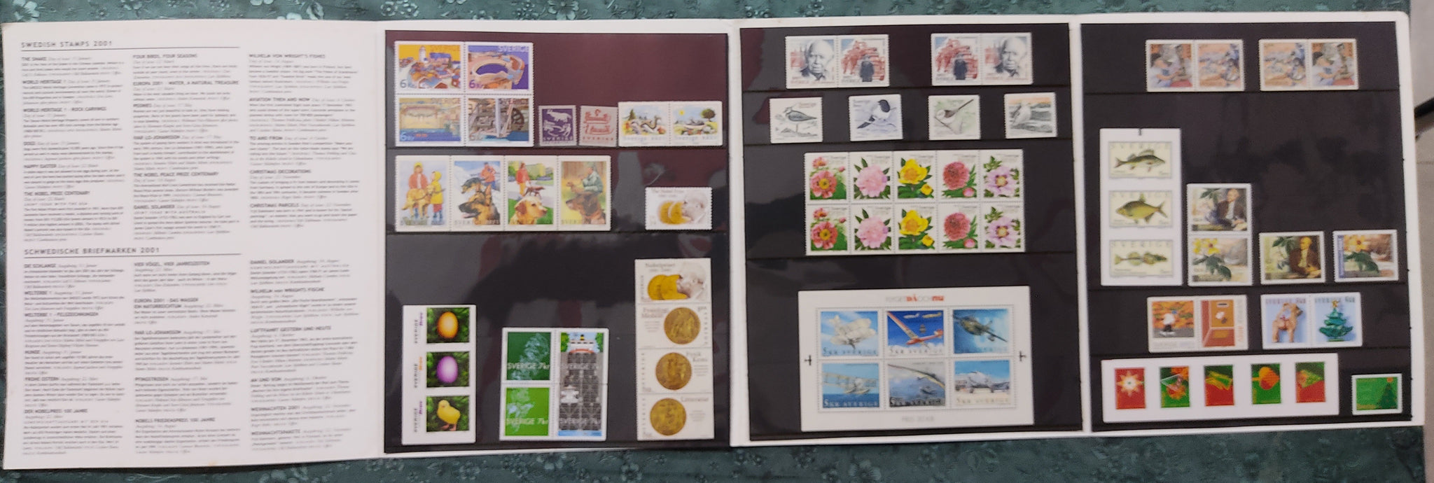 Sweden 2001 Year Pack of 69 Stamps Folder including Flower Dogs Aeroplane Birds Joints Issue Fishes MNH # 10106