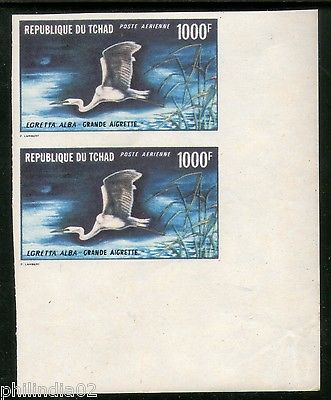 Chad 1971 1000Fr White Egret Birds Sc C84 $150 Imperforated Pair MNH #5960A