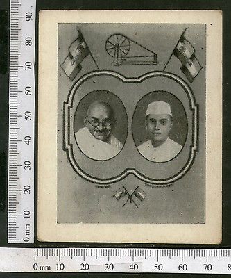 India Mahatma Gandhi & Nehru Congress Flag Real Photogarph RARE # 5914