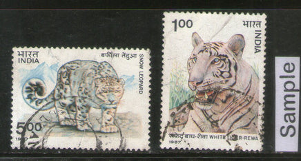 India 1987 White Tiger & Snow Leopard Wildlife Animal 2v Phila-1110a Used Set