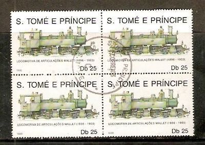 St. Thomas & Prince Island 1990 Steam Locomotive Railway Transport Blk/4 CTO #5519b