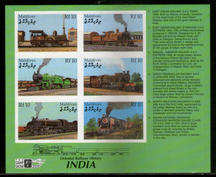 Maldives 2000 Indian Railway History Locomotive Transport IMPERF Sc 2443 M/s MNH # 8187
