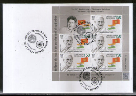 Kyrgyzstan 2023 Mahatma Gandhi Diplomatic Relation with India Flag Sheetlet FDC # 9256