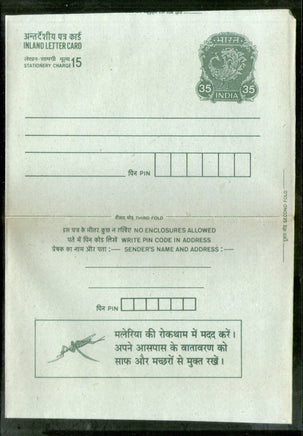 India 1990 35+15p Peacock Inland Letter Card with Malaria Mosquito Health Advertisement ILC MINT # 266FL
