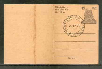 India 1975 15p Tiger Discipline Advt. Postal Stationary Post Card # PCA7