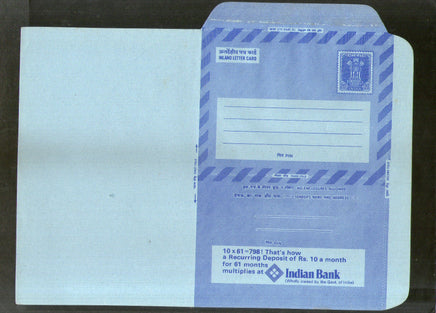 India 1977 20p Ashokan Inland Letter Card with Indian Bank Advertisement ILC MINT # 36