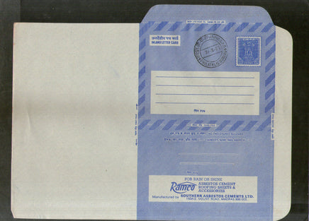 India 1977 20p Ashokan Inland Letter Card with Ramco Cement LTD Advertisement ILC MINT # 49