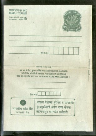 India 1990 35+15p Peacock Inland Letter Card with State Bank Advertisement ILC MINT # 267FL