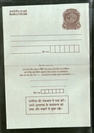 India 1990 75p Peacock Inland Letter Card with Malaria Mosquito Health Advertisement ILC MINT # 270FL