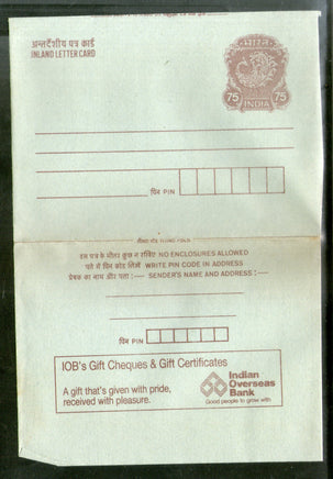 India 1990 75p Peacock Inland Letter Card with Overseas Bank Advertisement ILC MINT # 274FL