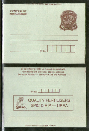 India 1991 75p Peacock Inland Letter Card with Fertilizer Urea Advertisement ILC MINT # 283FL