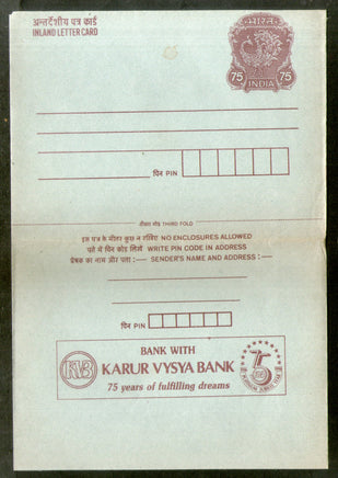 India 1991 75p Peacock Inland Letter Card with Karur Vysya Bank Advertisement ILC MINT # 282FL