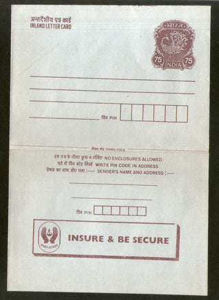 India 1991 75p Peacock Inland Letter Card with LIC of India Advertisement ILC MINT # 293FL