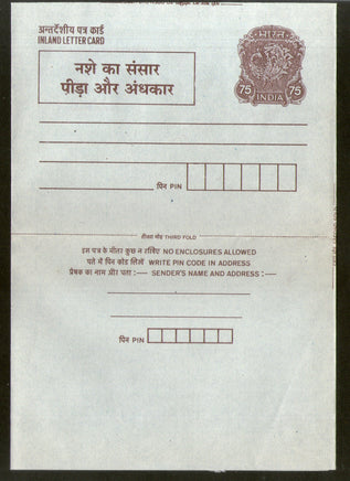 India 1992 75p Peacock Inland Letter Card with Anti Drugs Slogan Advertisement ILC MINT # 300FL