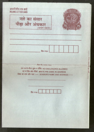 India 1992 75p Peacock Inland Letter Card with Anti Drugs Slogan Advertisement ILC MINT # 316FL