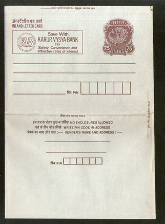 India 1992 75p Peacock Inland Letter Card with Karur Vysya Bank Advertisement ILC MINT # 325FL