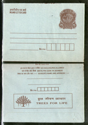 India 1992 75p Peacock Inland Letter Card with Save Tree Advertisement ILC MINT # 304FL