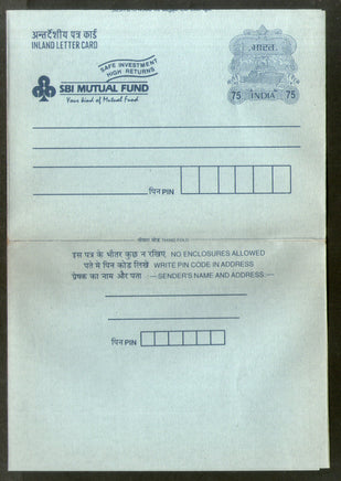 India 1992 75p Peacock Inland Letter Card with SBI Mutual Fund Advertisement ILC MINT # 298FL