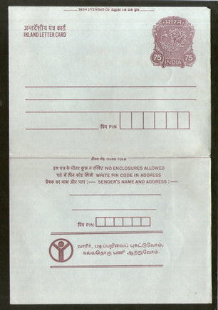 India 1993 75p Peacock Inland Letter Card with Adult Education Diff. Language Advertisement ILC MINT # 340FL