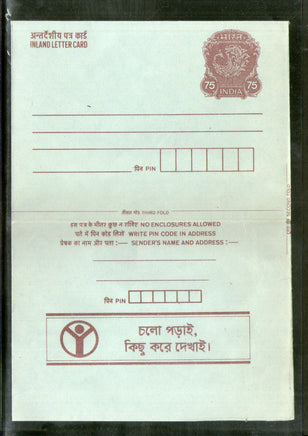 India 1993 75p Peacock Inland Letter Card with Adult Education Diff. Language Advertisement ILC MINT # 342AFL