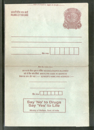 India 1993 75p Peacock Inland Letter Card with Anti Drugs Slogan Advertisement ILC MINT # 345FL