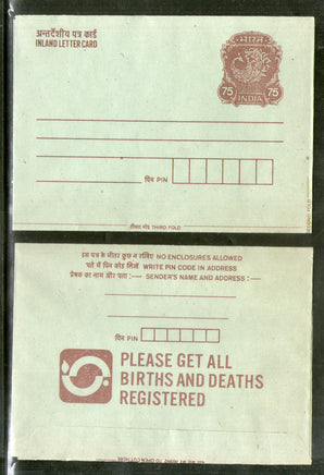 India 1995 75p Peacock Inland Letter Card with Birth Death Registration Advertisement ILC MINT # 369FL