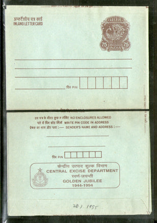 India 1995 75p Peacock Inland Letter Card with Excise Dep. Advertisement ILC MINT # 363FL