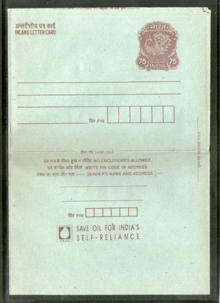 India 1995 75p Peacock Inland Letter Card with Save Oil Advertisement ILC MINT # 366FL