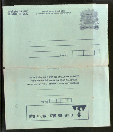 India 1997 75p Ship Inland Letter Card with Family Planning Advertisement ILC MINT # 422FL