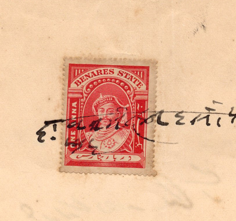 India Fiscal Benares State 1An Revenue T20 KM201 on Paper # 10252B