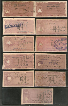 India Fiscal Kathiawar State 11 Diff. QV to KGVI Court Fee Revenue Stamp Used # 740